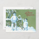 Hora do pai e do filho! Este impressão de natal vintage mostra um pai e um filho boneco de neve brincando na neve.