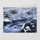 Esta foto é de um riacho cercado por árvores e pincel com neve congelada cobrindo o chão e as árvores.