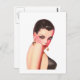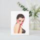 Imagem de pin-up de uma era clássica. Uma imagem divertida e sombria de uma pose retrorreflectora. Vestido de mulher dando uma olhada no ombro.