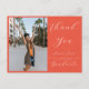 Um cartão postal de agradecimento de graduação de foto moderno. A frente pode ser qualquer foto de graduação favorita com o moderno script THANK YOU, informações da turma e nome do graduado. A parte traseira fornece um modelo de texto para mensagem genérica e espaço para mais.