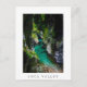 Cartão postal de Tolmin Gorge com musgo coberto por penhascos íngremes e água azul magnífica no Vale de Soca, perto de Kobarid, na Eslovênia, com uma fronteira branca, e o texto "Vale de Soča".