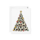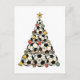 A festive Christmas tree made entirely of stacked soccer balls, decorated with ornaments, bells, gift boxes, and colorful string lights, topped with a bright star.
