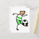 Um desenho animado e cômico de um garotinho brincando com uma bola de futebol e exibindo suas habilidades de bola. Personalize e escolha facilmente a sua própria cor de fundo ou adicione texto. Imagem disponível em vários presentes e produtos.