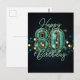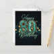 Cartão Postal Sofisticado Aniversário de 80 anos em Verde Água e