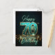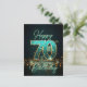 Cartão Postal Sofisticado Brilho Dourado Turquesa de 70 Anos de
