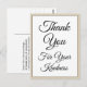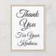 Este design de cartão postal de agradecimento sofisticado apresenta a mensagem "Obrigado pela sua gentileza" na frente, juntamente com uma mensagem personalizável no verso. Poderia ser usado para mostrar gratidão a alguém que fez um ato especial.