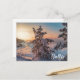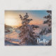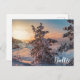 Paisagem nevada ao pôr do sol, congelada e coberta de neve no inverno.