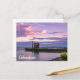 Belo nascer do sol em tons cor-de-rosa sobre a água e a silhueta de uma pequena cabana. Crepúsculo sobre lago. Pista de sol sobre píer em Volendam, Países Baixos.