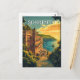 Descubra a beleza de Sorrento, Itália com este inacreditável cartão postal vetorial Art Deco. Admire a ilustração detalhada do cenário pitoresco e da arquitetura da cidade, feita em cores brilhantes e cor pastel e estilo colorido.