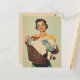 Cartão Postal Sorrindo dona de casa com cesta de lavanderia