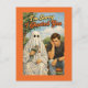 This charmingly awkward greeting card features a classic female sheet-ghost offering a bouquet of flowers to a visibly upset male seated beside her on a park bench. With retro-inspired illustration, warm nostalgic tones, and bold lettering that reads “I’m Sorry I Ghosted You,” this design humorously captures the all-too-relatable dating phenomenon of disappearing without explanation.