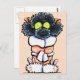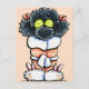 Engraçado desenho de Andie, ilustradora e criadora da Off-Leash Art™, de um Poodle preto vestido com roupão de pêssego, chinelos de coelho e fatias de pepino.