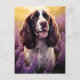 Cartão Postal Springer Spaniel em campo de Lavanda