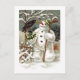 Esta imagem deslumbrante do postal alemão ilustra um corvo a visitar um boneco de neve rodeado por uma paisagem de inverno. A simplicidade e as cores resultam em uma bela imagem atraente. É perfeito para todas as suas necessidades de Natal e feriados.