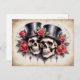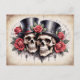 Cartão Postal Sra. e Sr. Skulls com chapéu e rosas de topo