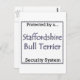 Você tem o melhor sistema de segurança ao redor...está protegido por um sistema de segurança de Staffordshire Bull Terrier. Ninguém mais precisa saber que seu latido é pior do que sua mordida.