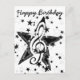 Nota de clave preta cercada por estrelas pretas e brancas.