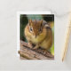 Um bonitinho esquilo olha com atenção para a câmera de um galho de árvore caído.