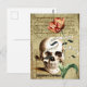 Cartão Postal Steampunk Skull Floral Escrevendo Halloween