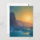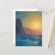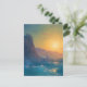 Cartão Postal Steep rocky coast and a rough sea at sunset