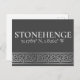 Coordenadas Latitude e longitude para Stonehenge, um sítio da UNESCO na Planície de Salisbury em Wiltshire, Inglaterra. Entalhe de borda celta prateada com fundo de cinza escuro