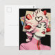 Cartão Postal Strawberry Dessert Woman Mixed Media Collage