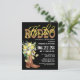 Western Themed chá de panela com uma dose colorida de amarelo cítrico! Seu último Rodeio está escrito em uma grande combinação de fontes vintage. Uma bota marrom de cowgirl de couro está cheia de limões e verde. Definitivamente uma nova tomada de um tema do último Rodeio. O texto está em branco claro. Este item está na Coleção Cowgirl Boots and Lemon.