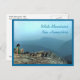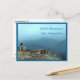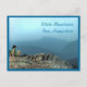 Um caminhante subiu para um terreno rochoso no Monte Crawford nas Montanhas Brancas de New Hampshire. Ela pode ver montanhas azuis negras e natureza por milhas e milhas. Este cartão postal de fotografia de arte captura a maravilha, a magnificência e a emoção da escalada de montanha.