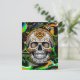 Convite Personalizado para Festa de Halloween. Crânio de açúcar preto, laranja e azul convites para cartão-postal do Dia das Bruxas.