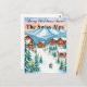 Mande desejos calorosos das montanhas com este lindo e personalizável cartão postal dos Alpes suíços! Este cartão encantador apresenta uma acolhedora cena de inverno ilustrada de uma festiva aldeia de chalé suíça.