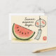 Capture the fleeting beauty of summer with this handmade-style Japanese etegami postcard. Featuring a nostalgic watercolor illustration of a watermelon slice and a delicate wind chime (fūrin), this 4x6 inch postcard evokes the charm of warm days and gentle breezes.