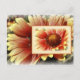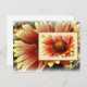 Envie este cartão postal com uma fotografia de perto de um solteiro lindo, amarelo e laranja florescendo Gaillardia (Flor do Banho) encharcada ao sol para iluminar o dia de alguém. A flor de solteiro moldada está deslocada para a direita e se destaca da borda de flores texturizada externa. Clique em "Personalizar!" para adicionar texto, como nome, verso ou aspas, e selecionar um estilo de fonte, tamanho e cor que você deseja para frente e para trás. Cartões postais agradecem excelentes, anotações de eventos, novo endereço e muito mais. Use-o até para um convite e economize nos custos de postagem. A fotografia é ©Patricia AZ Phillips.