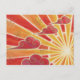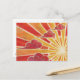 Um sol dourado e laranja se põe e o vento sopra nuvens vermelhas e rosa através do céu. Cartão postal com um design personalizável dourado, laranja, vermelho, rosa e branco para personalizar com seu próprio texto, imagens e ideias. Um lápis de cor original e desenho de tinta metálica de Jess Perry.