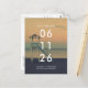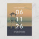 Design de praia por pôr do sol com uma salva-vidas de madeira na areia, salve os cartões postais. Personalize com seus detalhes de casamento e depois envie-os para seus convidados.