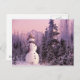 Cartão Postal Sunset Snowman nas montanhas de inverno