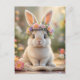 Cartão Postal Super cute bunny with a flower wreath on its head