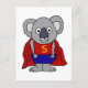 Um super-herói engraçado e engraçado, vestindo cartoon vermelho de capa, é fantástico para amantes do coala e amantes do urso e fãs e fãs do história em quadrinhos.