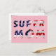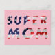 Texto da Super Mãe e a Bandeira dos Estados Unidos da América sobre o texto. T-shirts, presentes e lembranças para qualquer um. Divirta-se! Cartão Postal. Personalizável. Você pode alterar a imagem, a cor frontal e pode alterar ou excluir o texto do modelo na parte traseira da placa.