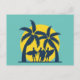 Cena gráfica de praia com palmeiras, surfistas e o sol. Perfeito para um amante de surf.