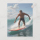 Este cartão postal apresenta um surfista feliz num dia ensolarado brilhante!