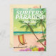 Surfista no Paraíso Queensland Austrália estilo antigo Sandy Beach Viagem art. Dourado poster de férias australiano.