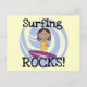 Cartão Postal Surfing Rocks African American Girl Camisetas