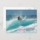 Cartão postal de um surfista profissional a surfar no seu conselho numa grande onda em Banzai Pipeline, North Shore, Oahu, Havaí com o texto rosa "Hang Loose!".