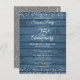 Com delicada confete de corações de amor prateados sobre um fundo de painéis de madeira rústica azul. Personalize com as informações da sua festa surpresa de aniversário de prata de vinte e cinco anos em letras elegantes. Criado por Thisisnotme©