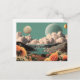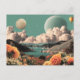 Cartão Postal Surreal Mountain Landscape with Planets and Clouds