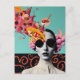 Uma mulher de taco surreal colage com um prato de tacos e uma tigela de salsa voando ao redor de sua cabeça