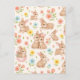 Cartão Postal Sweet Spring Bunnies & Floral Garden Pattern