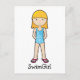 Essa garota bonita está pronta para mergulhar na piscina! Ela está vestindo seu azul favorito com roupas brancas de banho e flip-flops cor-de-rosa.