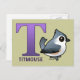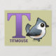 Um brinde adorável e fofo com o Titmouse por uma letra púrpura T. Você pode personalizar totalmente este presente! Mova a design, mude a cor ou o estilo de fundo, adicione o seu próprio texto ou imagens — faça dele o seu!