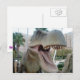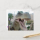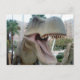 Um cartão postal com um dinossauro t-rex rugindo. Fotografia por © KatiesKreations.